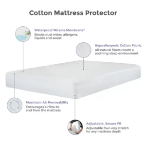 The Cotton Mattress Protector keeps your bed clean and comfortable for a good night’s sleep. Sleep comfortably with the soft, absorbent, breath-ability of cotton. Allows skin to breathe naturally, promoting a relaxing sleep climate.