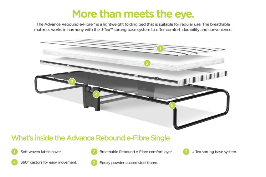 100% Foam Free breathable Rebound e-Fibre mattress.