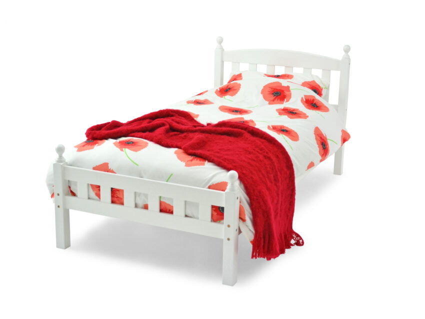 The Florence Bed is made entirely from hardwood for quick, clean assembly. The timber is from sustainable sources is knot free and when painted white. It makes a very stylish and reliably strong bed suitable for all age groups. It has a flat hardwood slatted base, hardwood centre rail and attractive head & foot ends.
