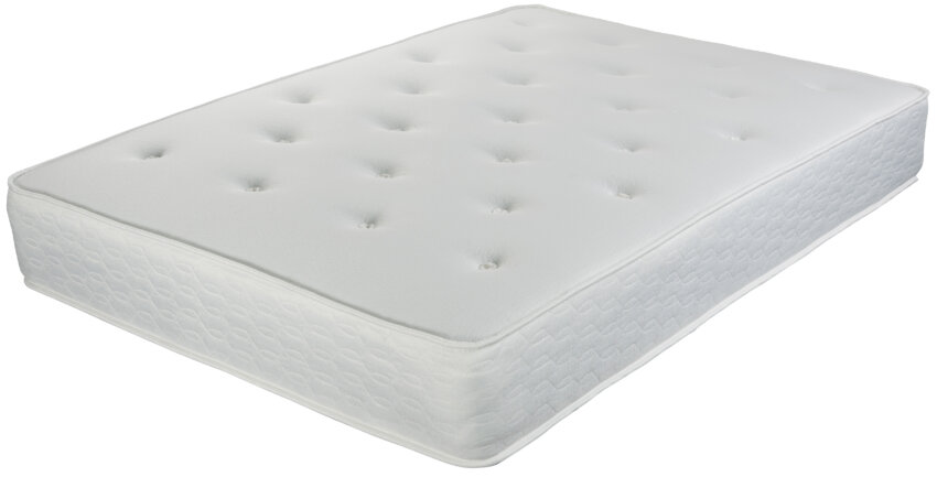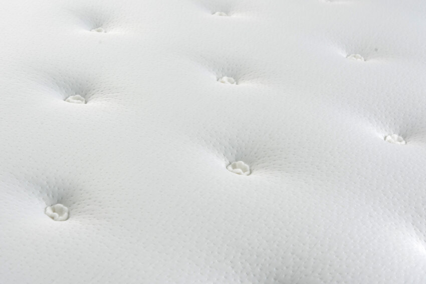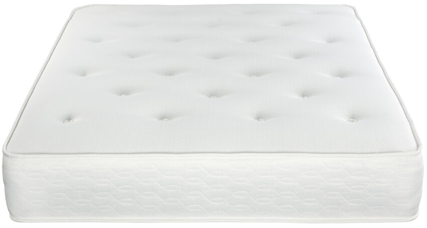 Framed 12.5 gauge Ortho open coil mattress for ortho firm feel and support with a traditional tufted knitted sleep surface