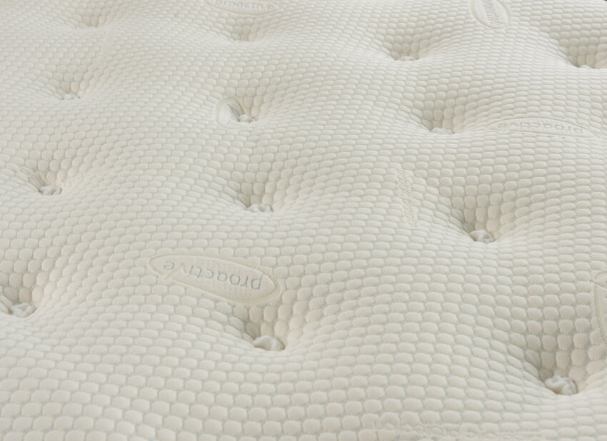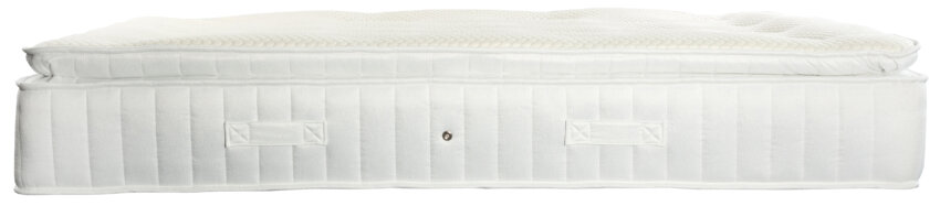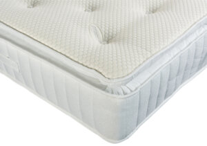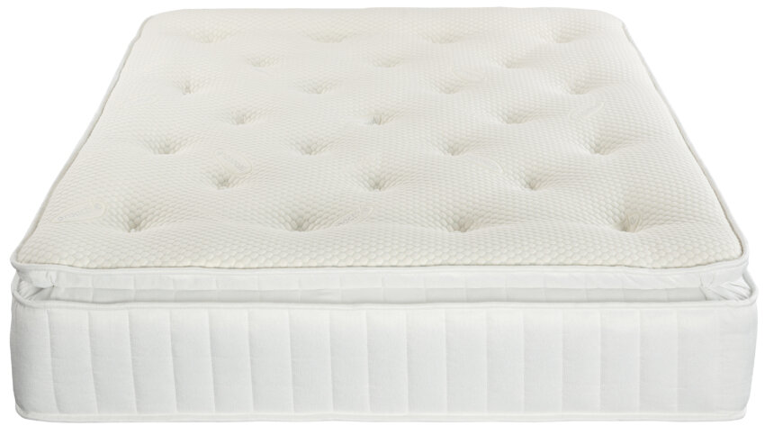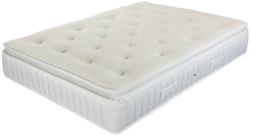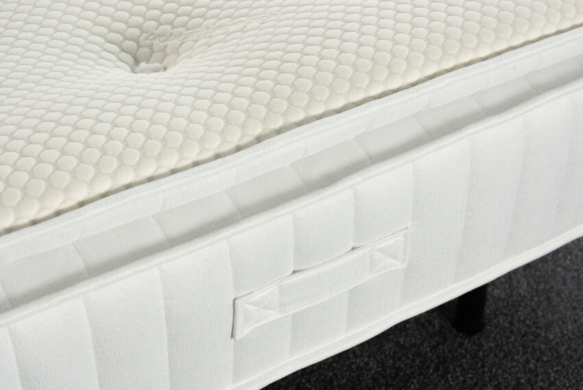 Luxury pillowtop Sleepzone mattress with twice the support of a standard open coil, with knitted top for extra softness and a vertical damask border