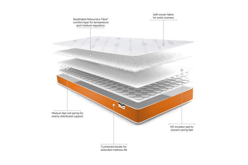 Breathable Rebound e-Fibre comfort layers for temperature and moisture regulation.